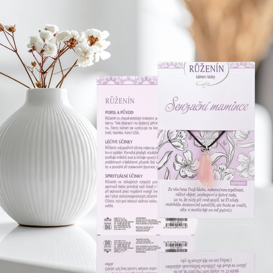 ✔ karta obsahuje dárek – přívěsek na klíče s léčivým kamenem a krásné věnování